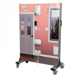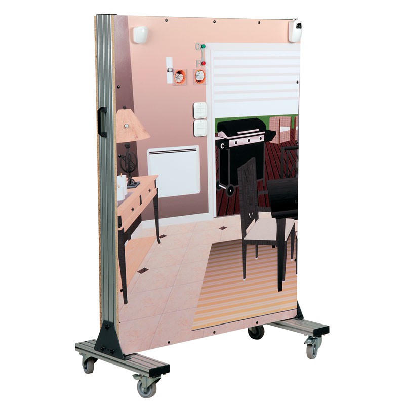 DP1-3D est un panneau d’alarme domotique radio double face. Cette solution très didactique a pour objectif de susciter l’intérêt des apprenants en leur proposant de découvrir la programmation domotique radio associée à une tablette tactile dans un environnement très proche de la réalité. Les 2 faces visuelles 3D, représentant une entrée et une salle à manger, regroupent les principaux composants d’une alarme communicante.