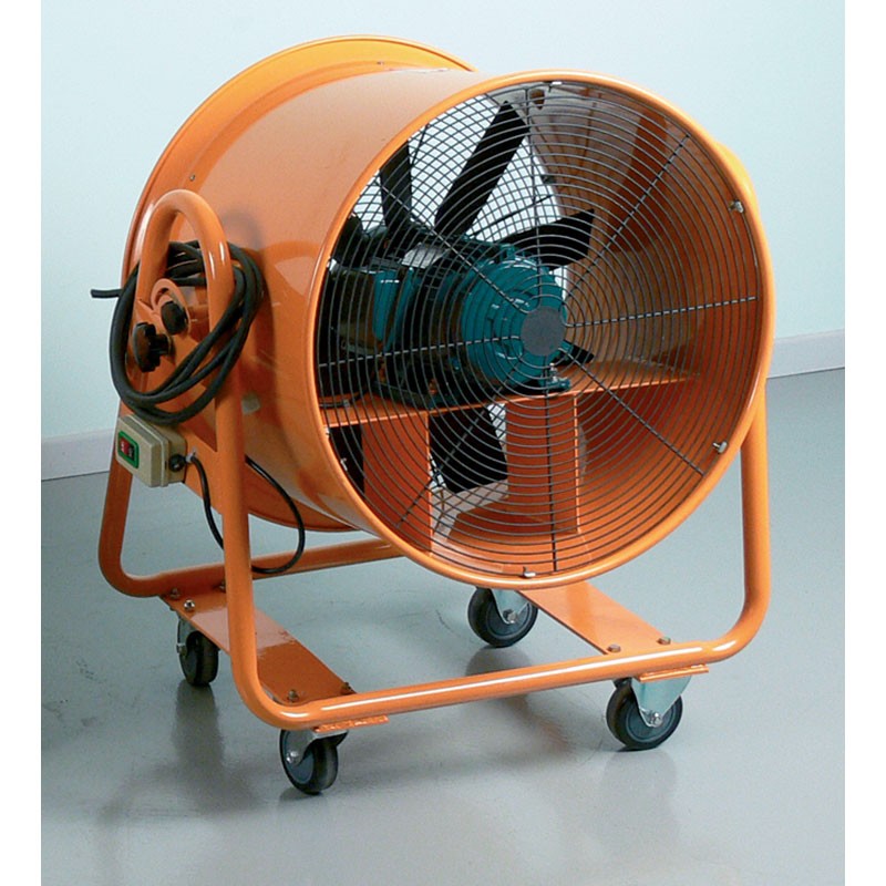 Ces ventilateurs, montés sur châssis à roulettes pour être facilement déplacés, pivotent autour d’un axe horizontal pour orienter le flux d’air dans toutes les directions.