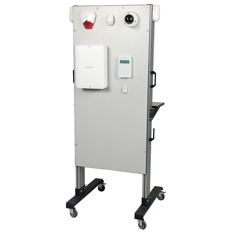 Tertiary-based surveillance of two areas by two infrared sensors and one area by camera PAL / EthernetIP. The student must complete the interconnections between the various components. Through the delivered software (in French), students will be able to configure all the parameters of the central unit as managementof detection areas, event groups, the engagement scenarios, operating schedules, key code programming, the management of the surveillance camera ... The student will also be able to set up a wireless router in association with the IP camera and then view the camera image on a smartphone or a tablet. (Free app available on AppStore or Android).