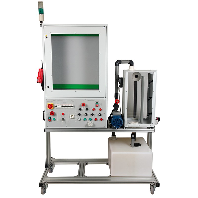 This operating section, equipped with a containment cabinet, allows, with optional grids, to study and wire the different operating modes of a level-controlled pumping station.